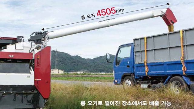 | 안전장치 | 엔진긴급정지스위치·엔진시동안전(세이프티페달·탈곡클러치·오거클러치)·엔진자동정지(커터막힘·짚배출막힘·처리통막힘·2번처리·전자제어FDS)·손탈곡안전장치 | |||||