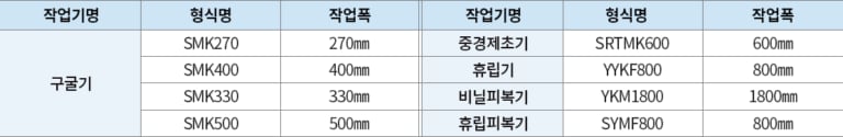 | 경폭(mm) | 390/550 | 180/200/240 | 220/240/270 | 170~355 | 정260,500 / 역320,520 |