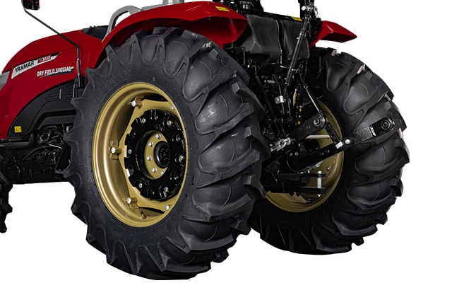 တာယာဆိုဒ်အကြီး (ပန်းအမြင့်)ကို အသုံးပြုထားသောကြောင့် လုပ်ငန်းခွင်တွင် အကောင်းဆုံးလုပ်ဆောင်ချက်များ (ရုန်းအား/ဆွဲ အား)ကို လုပ်ဆောင်နိုင်မှာဖြစ်ပါသည်။