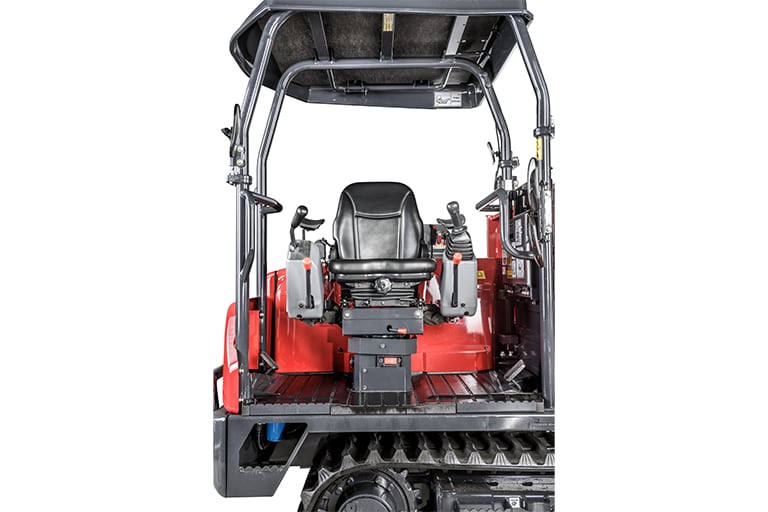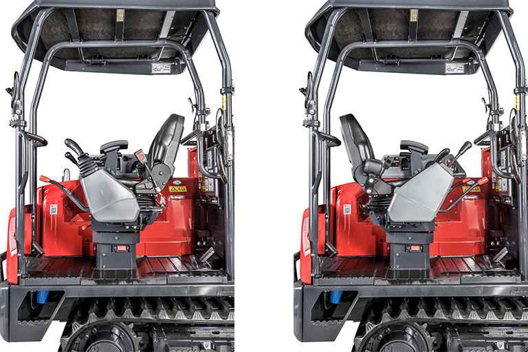Als u altijd kunt zien waar u heen gaat, verbetert dat uw veiligheid aanzienlijk. Daarom hebben we in de mini rupslader een bestuurdersstoel en rijhendels gemonteerd waarmee u 180° kunt draaien, zodat u altijd naar voren kijkt. Dit verbetert ook uw zicht en vermindert het risico op kostbare schade op het terrein.