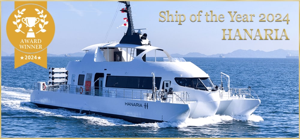 The passenger ship “HANARIA,” launched in 2024, is a “triple hybrid” model equipped with three power sources: a Yanmar hydrogen fuel cell, a large battery, and a biofuel engine. This new generation ship allows one to choose the optimal power source depending on one’s purpose, route, and desired performance.