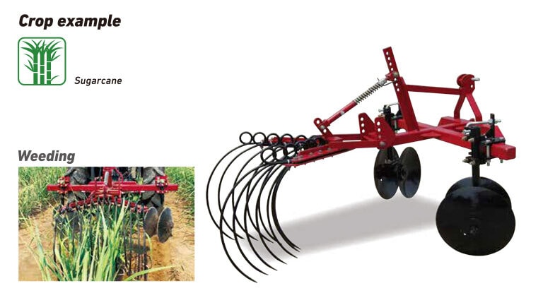 The height of the spring cultivator can be adjusted according to the field condition. With the work of the damper, the spring cultivator will follow the ground and weed out regardless of the attitude of the tractor.